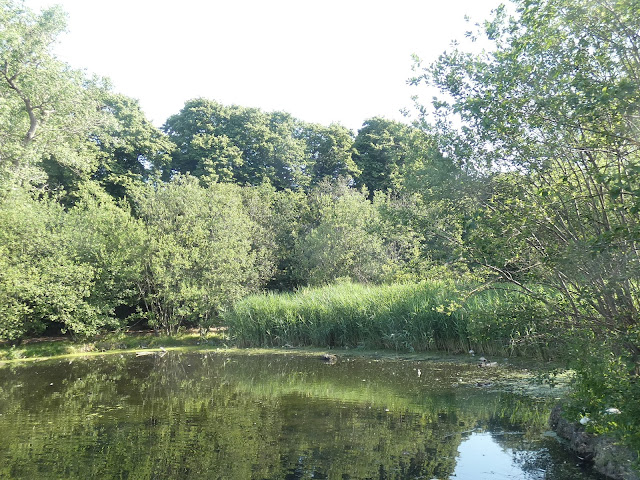 There's only a small entrance with a car park off the main road but the park soon opens up rather Tardis-like. A lake runs along the entire northern section and is sourced by the same watercourse that flows through South Park. At the start of the lake there's a small reedbed which held a couple of singing Reed Warblers and breeding Moorhens.